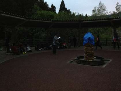 今,山の家では少し雨が降り出しましたが,強くならない限り,キャンプファイヤーは外でする予定です。