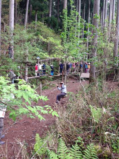 冒険の森でアスレチックをしています。