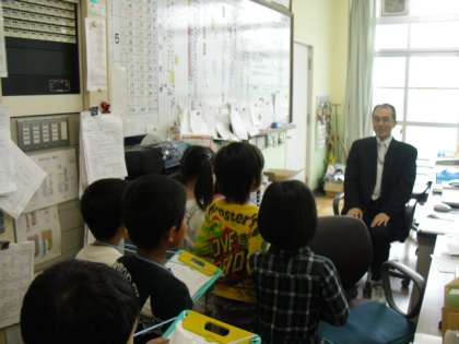 職員室では,田中先生や教頭先生にお仕事を教えてもらったり,1年生の教室にはないいろいろな物を見せてもらったりしました。