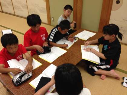 修学旅行1日目の振り返りをしています。
