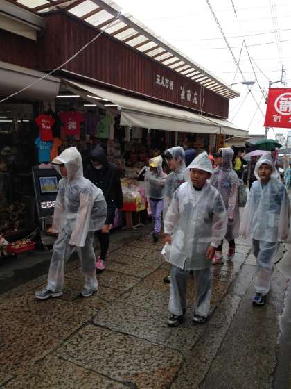 うどん作り体験が終わりました。少し雨が降ってきました。