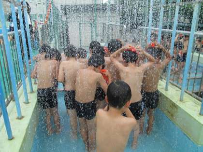 1年生のプール学習「水あそび」がはじまりました。