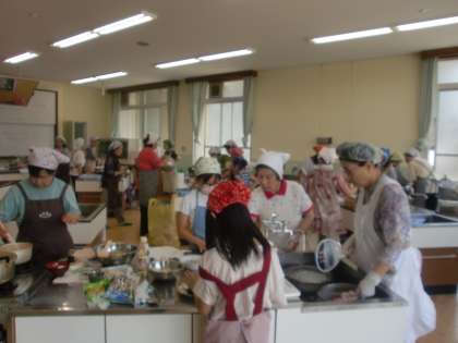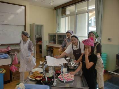 今回の土曜学習は,深草地域女性会の方に協力していただき,深草地域特産の「たけのこ」を使った「ふれあい料理教室」を行いました。今回のメニューは,「たけのこ入り稲荷ずしと若竹汁」です。材料を切ったり,煮たりしながら,教えてくださる女性会の方々と楽しく話しながら,楽しく料理を作りました。
