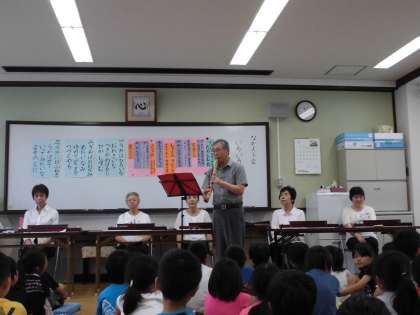 社会福祉協議会の方々に、いろいろな楽器を紹介、演奏していただきました。