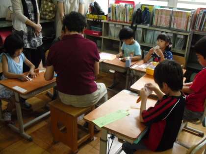 3,4時間目は「なかよし会」で地域の方に七夕飾りを