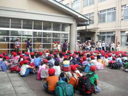 4年生は7月18日〜20日までみさきの家へ行きます。出発式をして元気に出発しました。