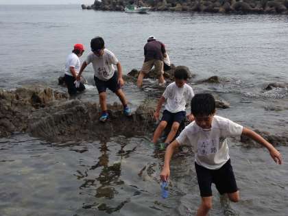 宮崎浜で、いそ観察をしています。