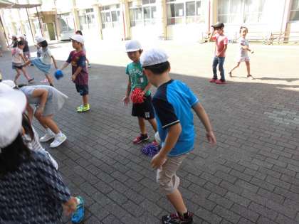 日本の蹴鞠(けまり)に似ていることに気が付いた子もいました。