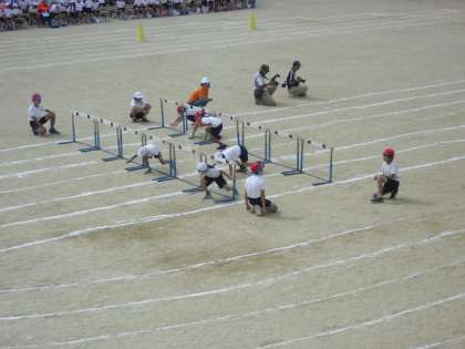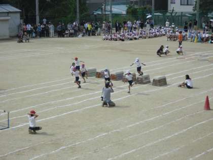 ゆけ!マリオ(個人走)の様子です。スターターの先生もマリオに変身。とんでくぐってがんばりました。