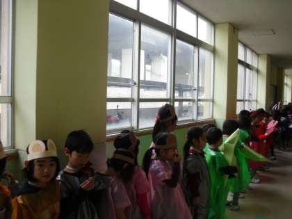 6日は,3組4組が衣装をつけて練習しました。