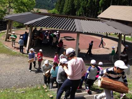 今から、野外炊事です。今日は、ハヤシライスを作ります。天気になり、とても暑くなってきました。