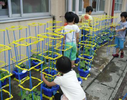 間引きをしたあさがおはぐんぐんと大きくなり始めています。