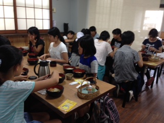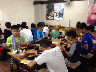 修学旅行で食べる最後の食事を味わっています。