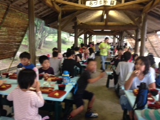 急に、大雨が降って来ました。雨のしずくを浴びながら、しっかりおかわりして、食欲旺盛です。