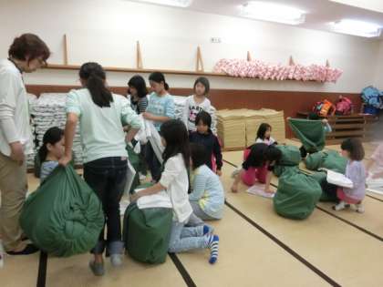 女の子は、90畳で寝袋でねます。