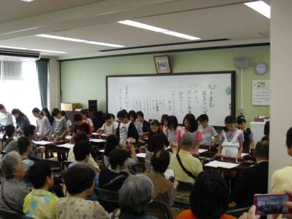 学校コミュニティプラザ事業「深草中ゾーン」による「こころを育む読書さんぽ」が26日土曜日に行われました。午前中には本校児童による大正琴の演奏・稲荷小児童によるコーラス・社会福祉協議会によるフルート演奏を楽しみました。その後,講演「深草学区稲荷学区に見る京都の歴史・文化・伝統」が行われました。同時にリサイクル図書の無料配布が行われ,いずれも大盛況でした。午後からは竹の子ホールにてお楽しみ会が行われ,大型紙芝居や工作などで楽しみました。