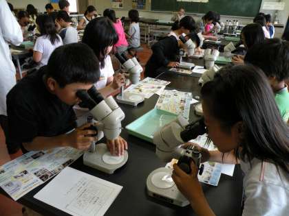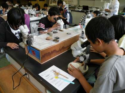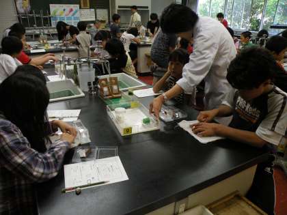 科学センターの実験室でクラスごとに違ったテーマで実験や観察をしました。