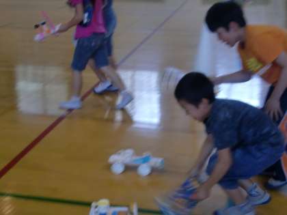 身の回りのいらないものを利用して,風で動くおもちゃを作りました。車輪と風を受けるものがポイントとなります。給食のプリンカップをたくさん洗って,竹串と固定するのに一苦労。試運転させるとぐらぐらするので,ペットボトルキャップで作り直すなどまたまた苦労。やっとできて,走らせて遊びました。