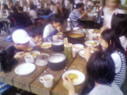 みんなで協力した第一回目の野外炊事。ご飯が固かったり焦げたりした班もありましたが、全般的にとてもおいしいカレーが出来ました。先ほどから少し雨が降ってきました。この後のナイトゲームができるかどうか微妙です。