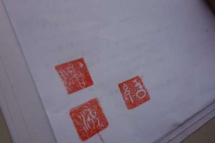 落款づくりを行いました。漢字の成り立ちの学習も活かしながら、デザインを考えることができました。石に写したり、彫ったりすることは難しかったようですが、できあがった版を押すとみんな満足そうでした。