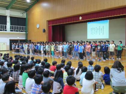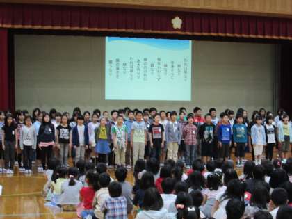 6年生と他学年との詩の掛け合いなど,工夫をこらした発表でした。