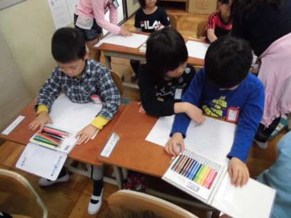 2年生とのなかよししゅうかいがありました。おにいさん、おねえさんに作り方を教えてもらいカラフルな「はなびらロケット」ができあがりました。とばすとクルクルと回ってとてもきれいでした。2年生と遊んだり、お友達とどちらが遠くへとばすことができるか競ったり、とても楽しいなかよししゅうかいとなりました。