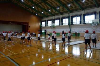 マット運動ではいろいろな場を設定して、少し難しい技にもチャレンジしています。来年は組体操もあるので、今日はたくさんの子が倒立に挑戦していました。