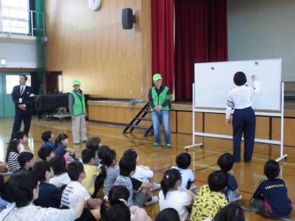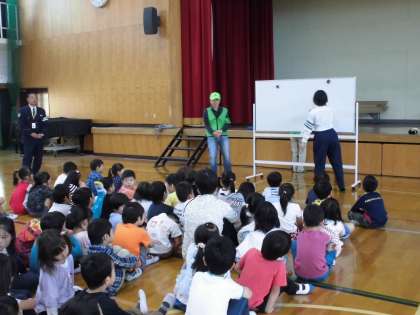 伏見警察署の方に来ていただき,交通安全について教えていただきました。