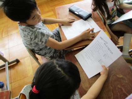 学校探検に行った時の説明の仕方を練習しました。