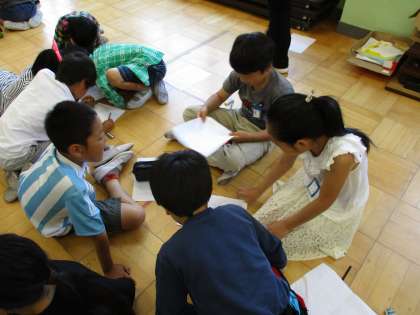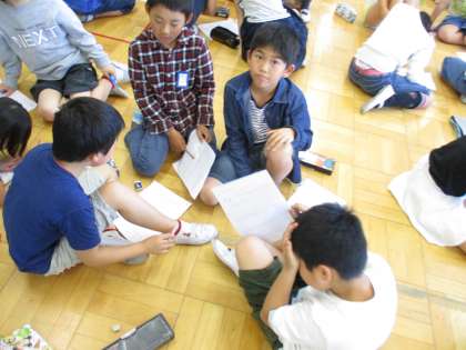 総合的な学習がスタートしました。前期は「地球大好き」というテーマで学習をすすめていきます。今日は「エコ」についてグループや学年で話し合いをしました。これから調べ学習などで,学習を深めていきます。