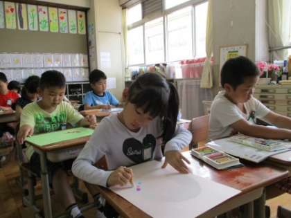 話し合った後は,黙々と描いていました。