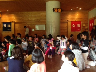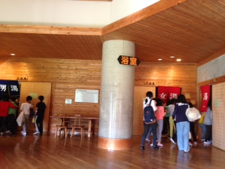 お風呂の時間です。山の家の大浴場はとても広くて気持ちいいです。
