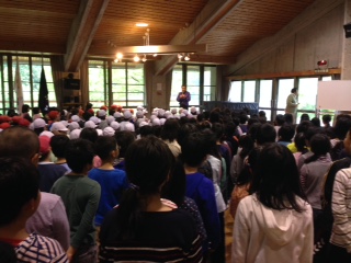 四校合同の朝の集いです。花脊の気候は、青森県と似ているそうです。