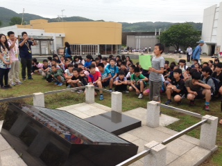 被災されたかたの御冥福をいのって、千羽鶴を捧げ、黙祷しました。