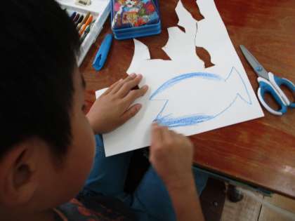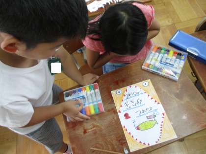 ポスターを書いたり,ルールを相談したりしています。