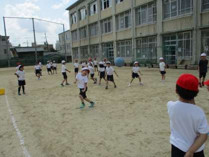 体育の学習で、2年生全員でドッヂボールをしました。初めてドッヂボールをした子もいましたが、ボールを遠くまで投げたり、飛んできたボールの正面に入って上手にキャッチしたりして、楽しみました。