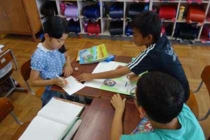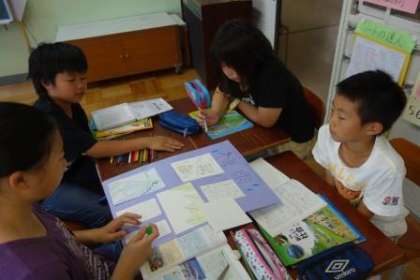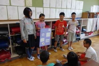この前調べ学習をしたことをまとめて発表しました。「はじめてしった!」「そうやったんや。」と友だちの発表を聞いて、たくさんのことを知れたようでした。
