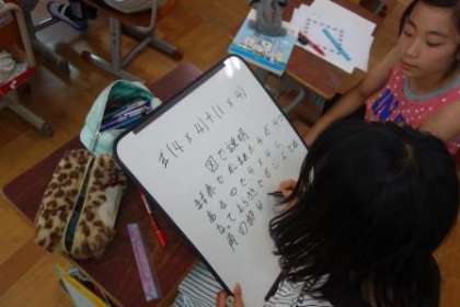 式と計算の学習をしています。今日は、1つの問題からいろいろな式を考えました。そしてそれを班でまとめて、交流しました。