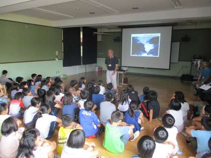 総合的な学習の一環として,「エコライフチャレンジ」の学習をしました。地球の温暖化やふだんの生活の「エコ」についてクイズも交えて,楽しく学習することができました。