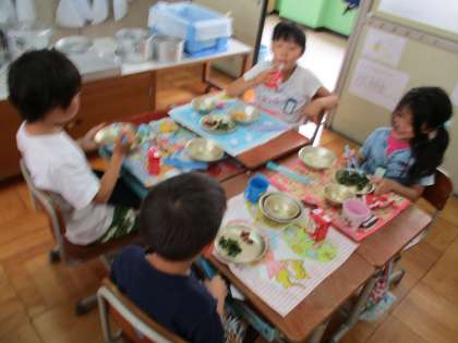 交流給食がありました。4年生は2年生と交流です。緊張している様子の2年生に積極的に話しかける姿が見られました。金曜日はこのグループでゲームランドを回ります。楽しみですね♪