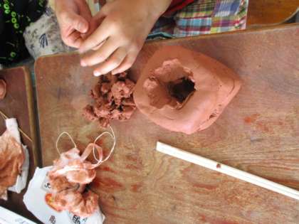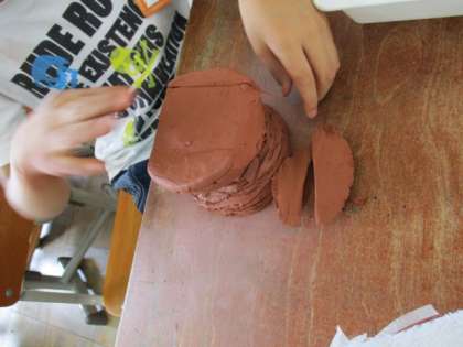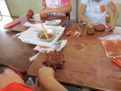 子どもたちは粘土を切ったり,かきだしたりする感触も楽しんでいるようでした。