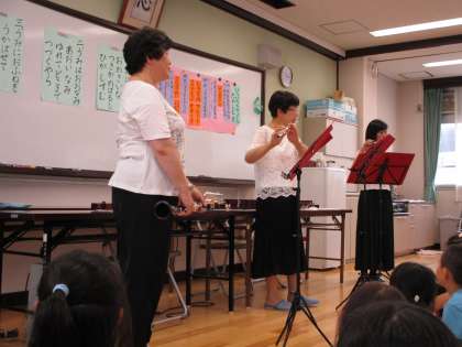 フルートや尺八,クラリネットやオカリナ,大正琴の音色,それぞれよい音でうっとりと聴いていた子どもたちです。