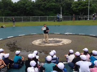 入所式をしました。みさきの家の、所員さんから、三つの約束や、津波の時のことや、怪我しないための話を聞きました。また、このみさきの家で、過ごすために、誓いの言葉をいいました。