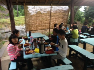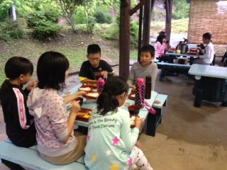 キャンプファイヤーに備えて,腹ごしらえです。