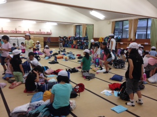 女子は、テントのはずだったのですが、雨が降るようなので、90畳で、シュラフで寝ます。
