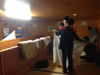 ふとん,毛布はきちんとたたんで重ねることができました。