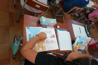 合同な図形についての学習を始めています。ぴったり形がかさなるか、どこに気を付けて重ねるかなど、考えを伝え合いながら取り組みました。