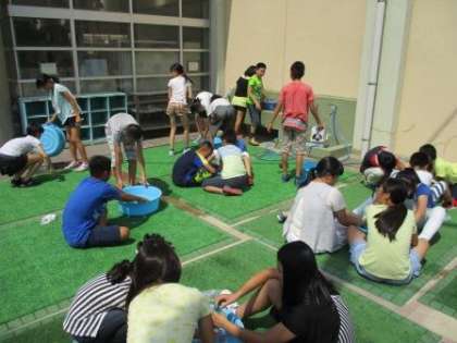 手洗い(もみあらい)をして自分のくつしたをきれいにしました。