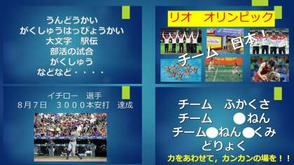 子ども達には,イチロー選手の努力と,リオの日本チーム力の話をしました。