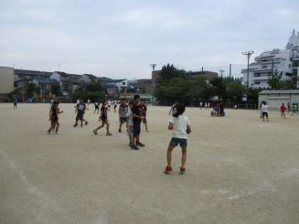 そんなに暑くもなく過ごしやすい休み時間でした。今日はボールが使える日だったので、どのクラスもボールあそびをしている子が多かったです。